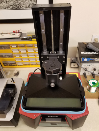 The aluminum finish on the Z axis column and build plate of the Photon has a more industrial feel to me than the black aluminum and plastic on the Saturn 2, although the column on the Saturn 2 is actually larger. Both have sturdy linear rails.